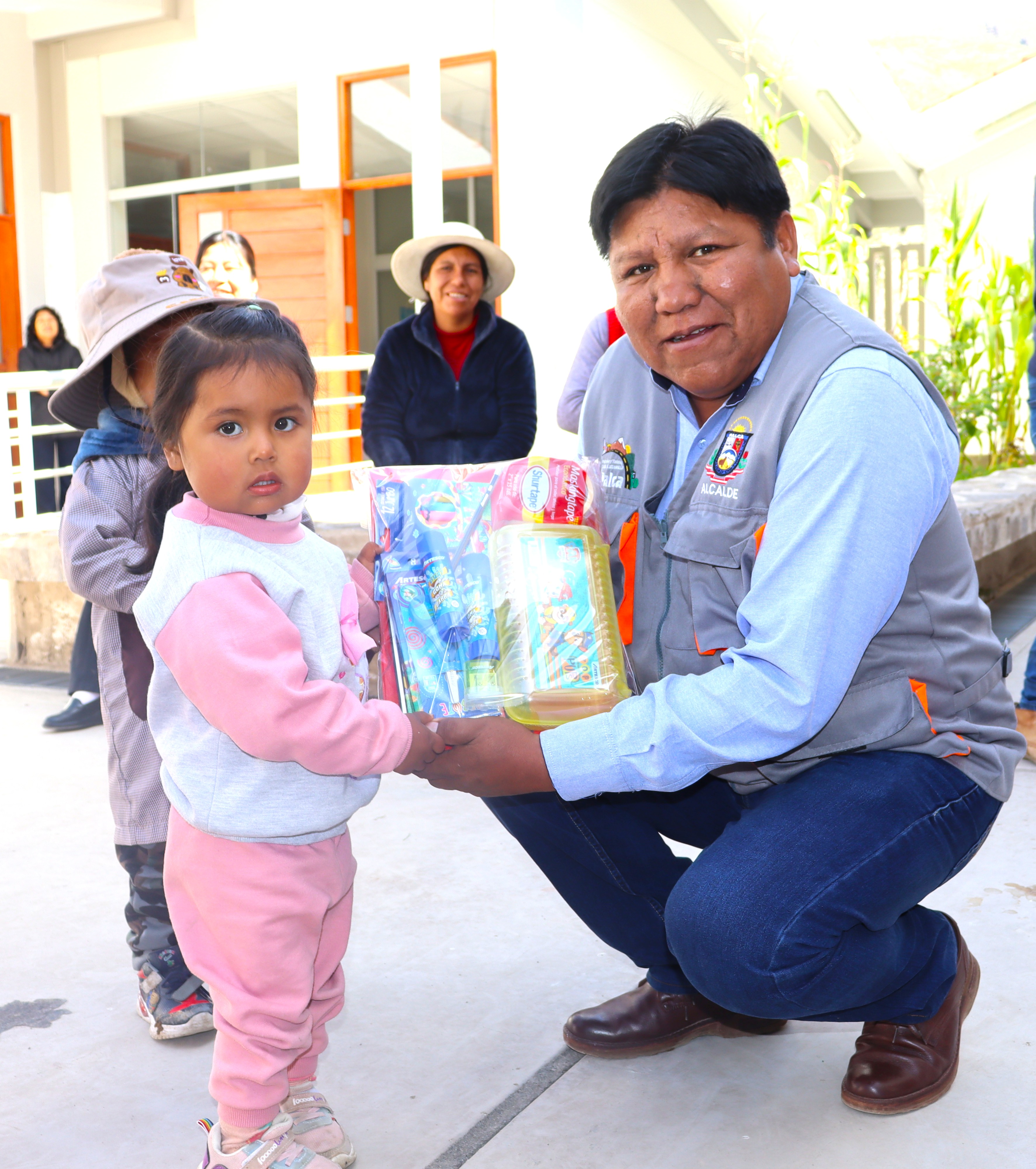 Esta mañana con gran algarabía y muestras de agradecimiento de los niños, padres de familia y profesores, alcalde Toribio Zanga Onofre acompañado de regidores entrego 20 Kits escolares a igual número de estudiantes en la I.E. “José María Arguedas Altamirano de la comunidad de Palca.