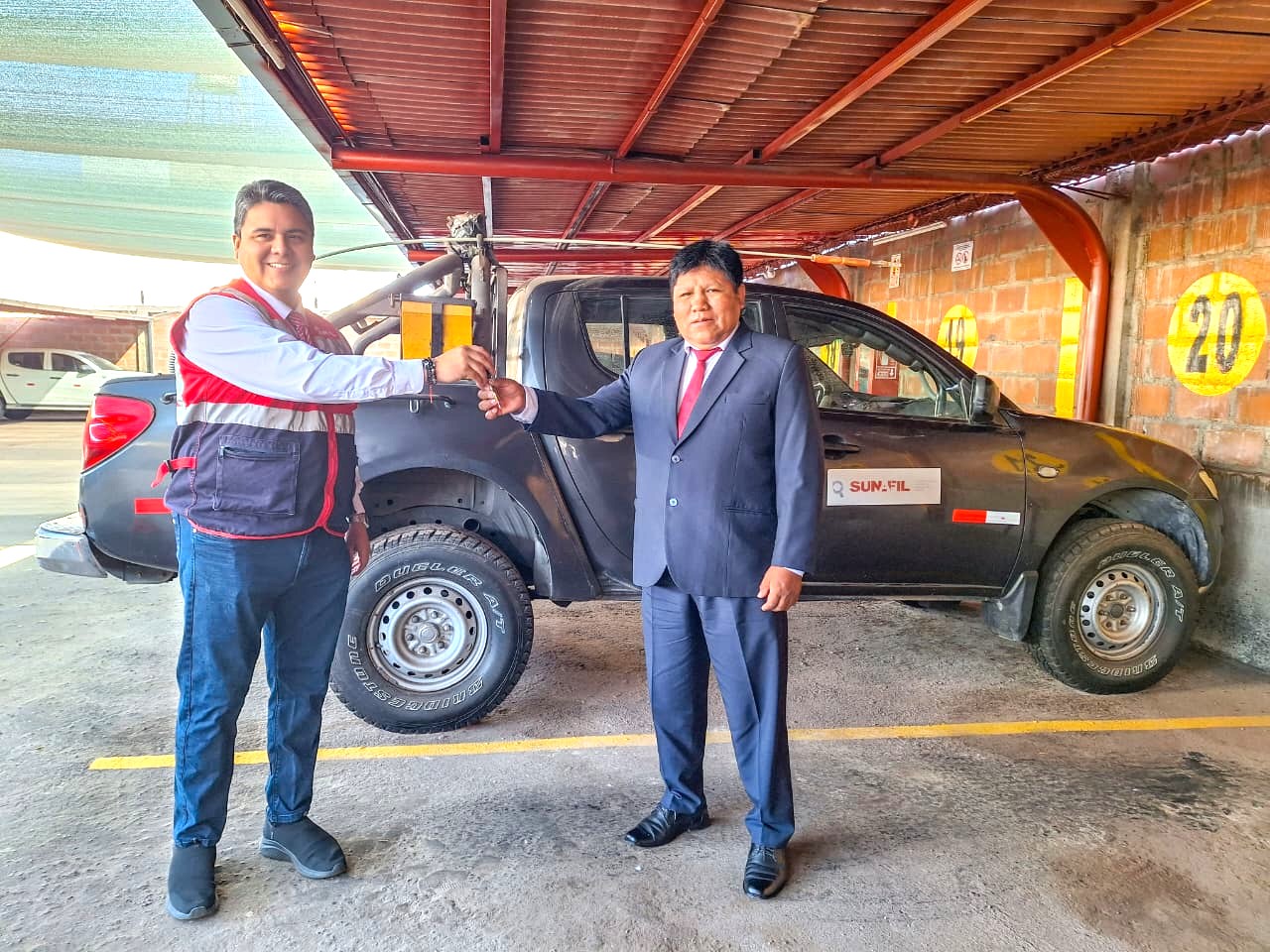 El vehículo fue entregado por el Intendente Regional de Sunafil, Abog. Eduardo Enrique Pérez Maldonado, y recepcionado por el alcalde distrital Toribio Zanga Onofre, quien resaltó y agradeció a la entidad por esta transferencia vehicular.