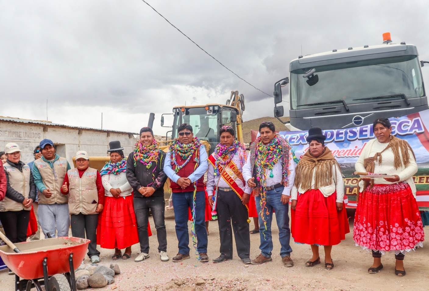 Los presentes celebraron este importante avance al ritmo del Conjunto de Zampoñas Juventud 28 de Setiembre Ancomarca, que animó la jornada, resaltando la esperanza de progreso que la obra traerá para las familias de la zona.